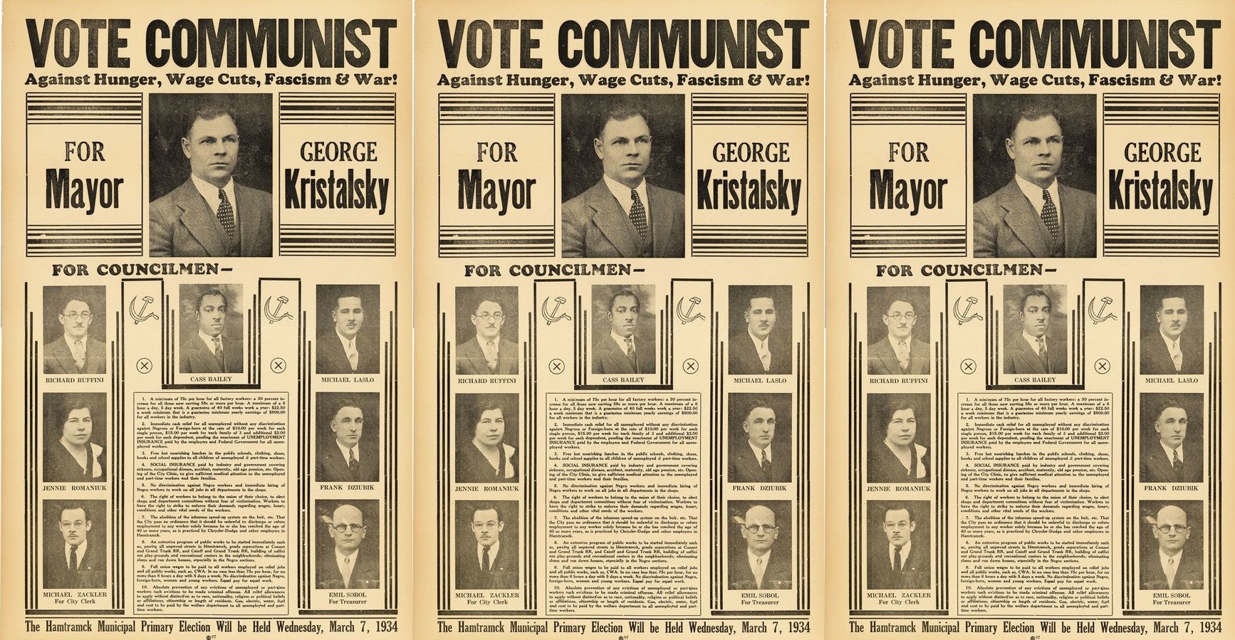 ‘Workers, Vote Communist–Vote Against Hunger and Fascism’ Hamtramck, Michigan Communist Party Municipal Election Pamphlet, 1934.