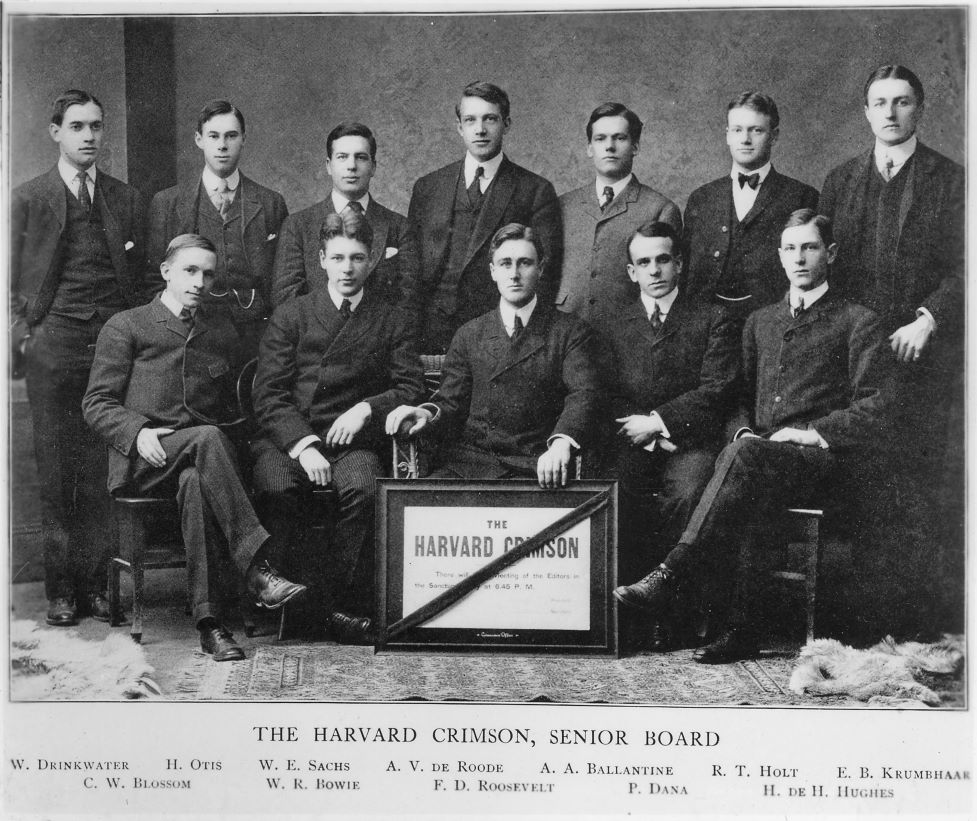 Franklin was born on his father’s 500-acre estate in Hyde Park. “Col. Archibald Rogers, the Standard Oil magnate, was a next-door neighbor, and it was in the Rogers home that Roosevelt had his first day of school. The Rogers boys, four of them, were his playmates, and Edmund, now president of the Fulton Trust Company, was his closest chum …It was the childhood of a rich man’s son and a happy one.” His mother later mentioned his “comparatively quiet, sequestered life” as a child; private tutors at home, annual trips abroad with his mother, French and German governesses–this was his life until he entered Groton, and after Groton, Harvard.