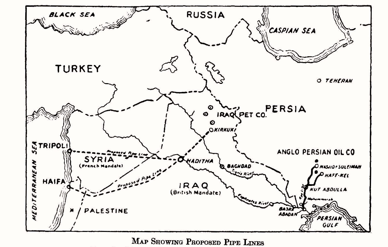 A specially fierce struggle was waged in the course of the last few years between the Turkish Petroleum Company, representing British capital (Shell concern with Deterding at the head), and the Standard Oil Company (American oil capital) for the exploitation of the oil fields in Iraq, particularly in Mosul. It was only in the last few weeks, after all the attempts of the British to keep out the Standard Oil had failed (the declaration of the British Under Secretary of State in Parliament that Mosul oil is only a legend, that there exist no supplies of oil in Iraq worth speaking of, which declaration made the rounds of the European press in the Summer of this year, seems according to this declaration to have been, only an episode in the fight of Deterding against Standard Oil!), that an agreement was arrived at, which means in fact a victory for the American claims (the Americans obtained 25%).