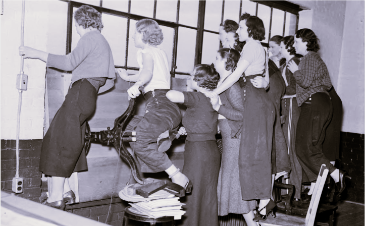 In almost every sit-down, rules posted by the strike committee have restricted smoking to certain rooms, banned alcoholic liquors, and warned against damage to company property, gambling, quarreling, or any such disorder. Those in change of policing the factory saw that discipline was enforced. Where men and women are involved, separate sleeping quarters are arranged and a matron is often placed in charge of the women’s “dormitory.”