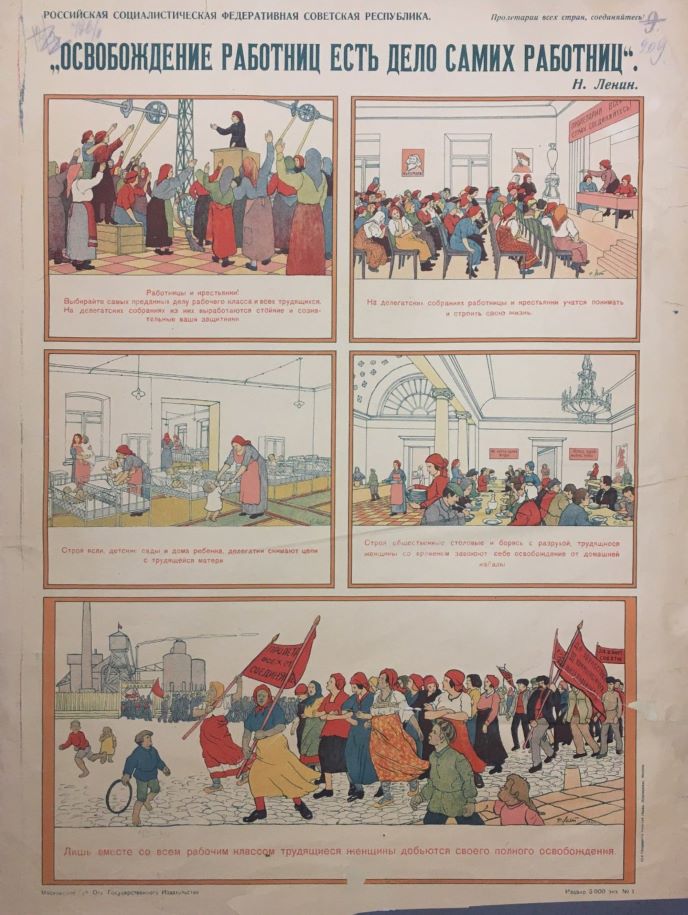 After the proletariat has conquered and secured state power in the form of Soviets, it is still confronted by a mighty task. It has to transform the whole social structure into a communist structure, not only the economic foundation, but the whole ideological superstructure as well. There is no sphere of social life in which this can be done without the understanding and self-sacrificing co-operation of the broadest masses of women. In the Soviet republics it is an imperative necessity that the mass millions of working women should be brought to take part in the constructive work of the proletariat, and that their capability and efficiency for this work should be increased.