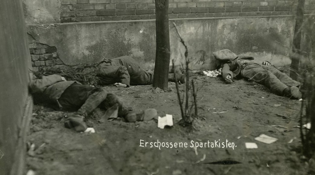 Coal strikes in Westphalia. Grumbling in Berlin factories. Those who couldn’t make up their minds before began to make up their minds now, from the bottom up–from the belly up. After they had been mostly disarmed and the cities taken into the iron hand of their enemies, after their own friends of the vanguard had been killed.