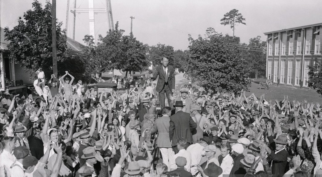 Throughout the entire course of the strike, the Gorman officials referred to Roosevelt as “that great humanitarian at the White House,” and tried to build up, in speeches and press statements issued daily, the waning faith of the workers in Roosevelt and the N.R.A. They said the N.R.A. was all right, the trouble lay with the chiseling employers who were “violating” the N.R.A. They spoke of “arbitration” and the hope that Roosevelt would appoint an “impartial” board. They sang the song of co-operation with the employers and did not prepare the struggle.