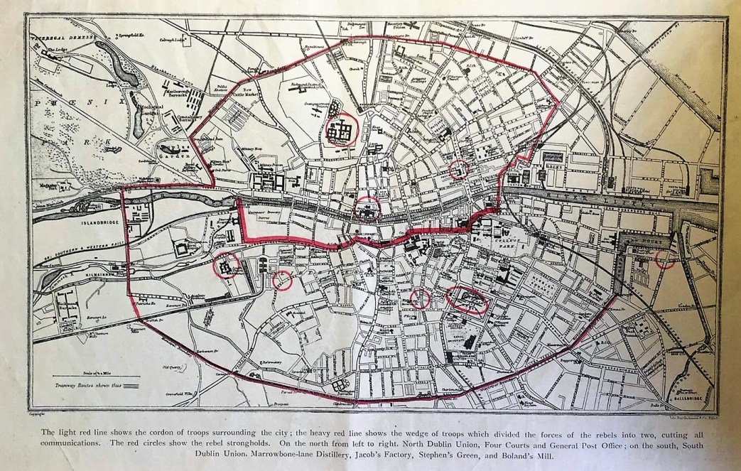 A glance at the map of Dublin shows the importance of this victory. General Sir John Maxwell was justified in reporting: “It divided the rebel forces into two, gave a safe line of advance for troops extending operations to the north or south, and permitted communication by dispatch rider with some of the Commands.”