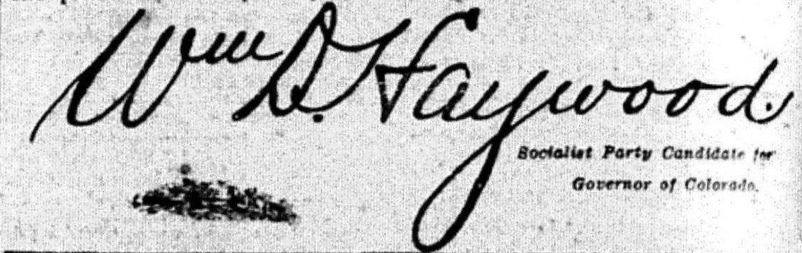 Written like a man facing death, which he was, a barn-burner from Haywood. In jail waiting trial on the ridiculous charges of murdering that state’s former governor Frank Steunenberg in 1905, Western Federation of Miners leader William D. Haywood accepts the nomination for Governor of Colorado (where he was extradited from) on the Socialist Party ticket. Winning 16,000 votes or about 8% that November, Haywood and his comrades were successfully defended by Clarence Darrow in a case that brought Haywood to national attention. Haywood and his comrades were acquitted in July, 1907.
