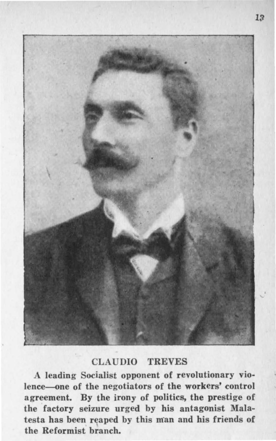 “The Central Technical Committee asks all the local branches of the Fiom (Metalworkers Union) to come to an understanding with the local branches of the technical and administrative employees and with the technical bosses as individuals where these are not organized, to form a technical and administrative commission to provide for the co-ordination of production and efforts, and for the solution of eventual differences which may arise between the directing element and the workers now in the factories.
