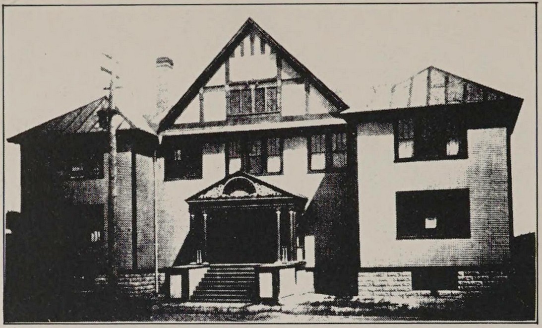 On the upper floors are large rooms for serving suppers, having modern kitchen appliances; also spacious closets for hanging wearing apparel, racks being provided and numbered for hats, satchels, etc. The rooms are finished in different colors, with red and blue predominant. The wainscoting, doors and wood work are mostly all finished in a beautiful shade of weathered oak. The spacious cellar, with cement walls and floors, is finely laid out for steam heating plant, gymnasium, bathrooms and is already equipped with excellent toilet arrangements.