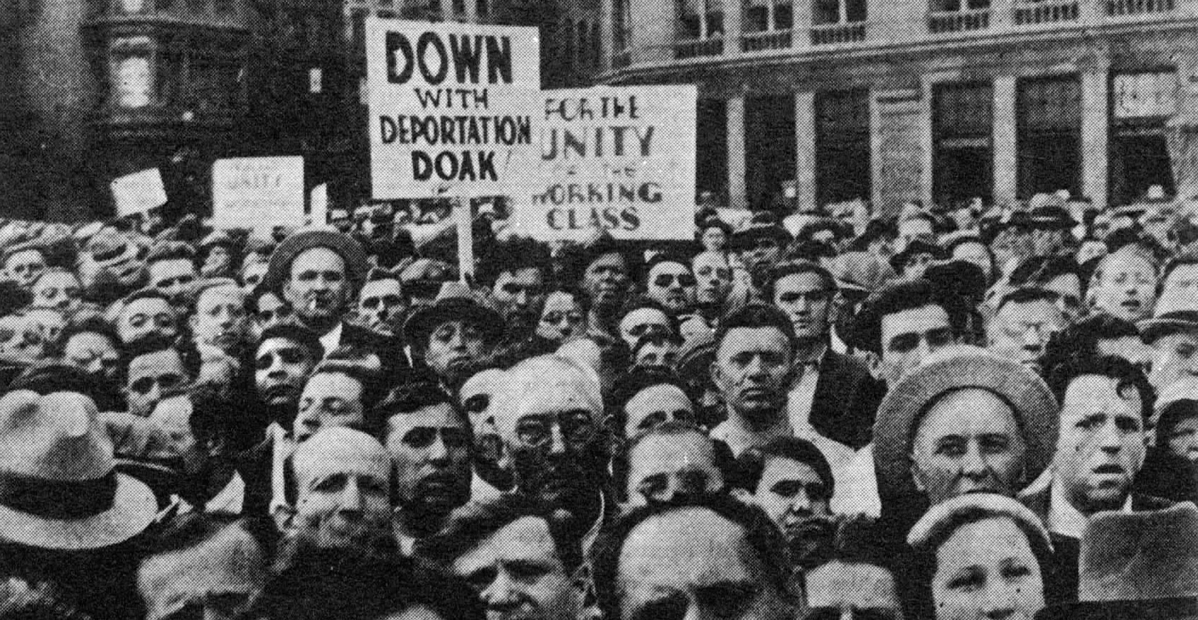 Workers! What is the cause of this terroristic attack against the foreign-born workers? Why all these raids, persecutions and deportations? Why the increased wave of lynchings against Negroes? Why the suppression of the workers’ press? Why this organized government strike-breaking? The reason is that the capitalist system is in a tremendous crisis. More than ten million of workers are without work. Millions of farmers and their families, producers of food, are starving. No relief is being given, except the miserable crumbs of charity which only serve to make more clear the sentence of starvation that has been passed by the capitalist class upon the workers. Under these conditions of misery and starvation, the discontent of the masses is growing. The protest of the workers is becoming louder and more emphatic every day. The workers are beginning to organize, to demonstrate, to fight. They demand work or wages and social insurance, insurance against unemployment, immediate grants of relief from the government treasuries.