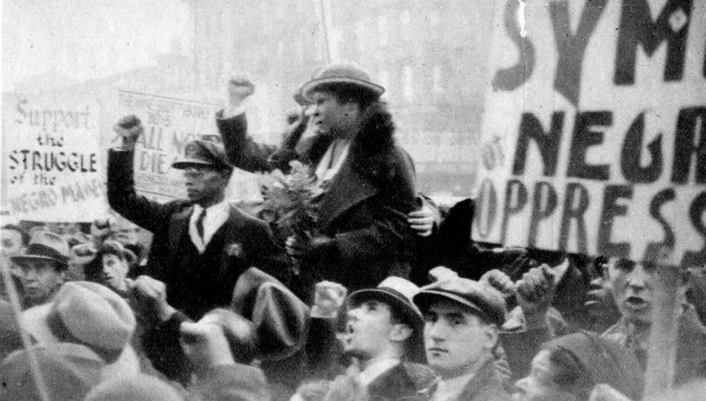 Massive march in support of the Scottsboro defendants led by Angelo Herndon in Harlem on November 3, 1934.