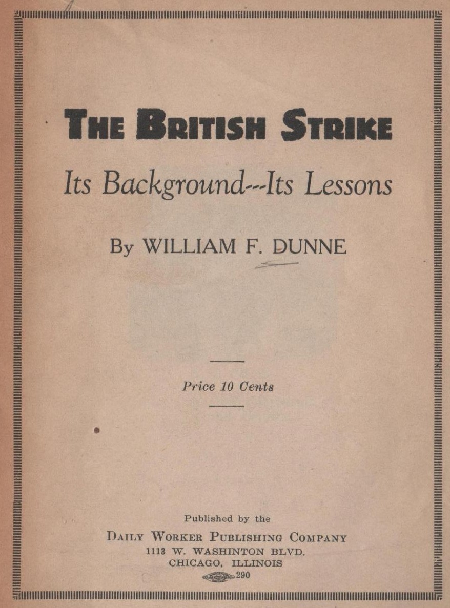 ‘The British Strike: Its Background, Its Lessons’ by William F. Dunne. Daily Worker Publishing, Chicago. 1926.