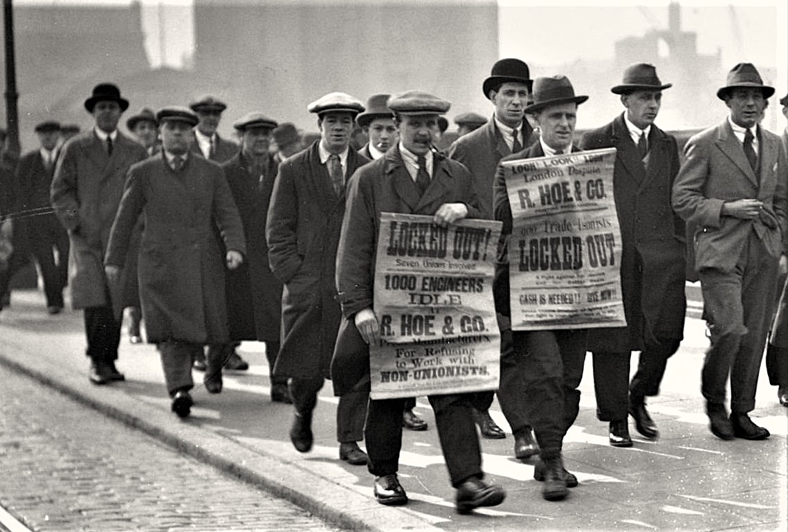 The Amalgamated Engineering Union (engineers in Great Britain are machinists, etc.) began negotiations for a new agreement and met with unexpected opposition from the bosses who insisted on district agreements, lower wages and a change for the worse in the job conditions. One of the most powerful unions in Great Britain, it was evident that the capitalists believed that the A.E.U. would not fight and that if it did it would receive but little support from the rest of the labor movement.