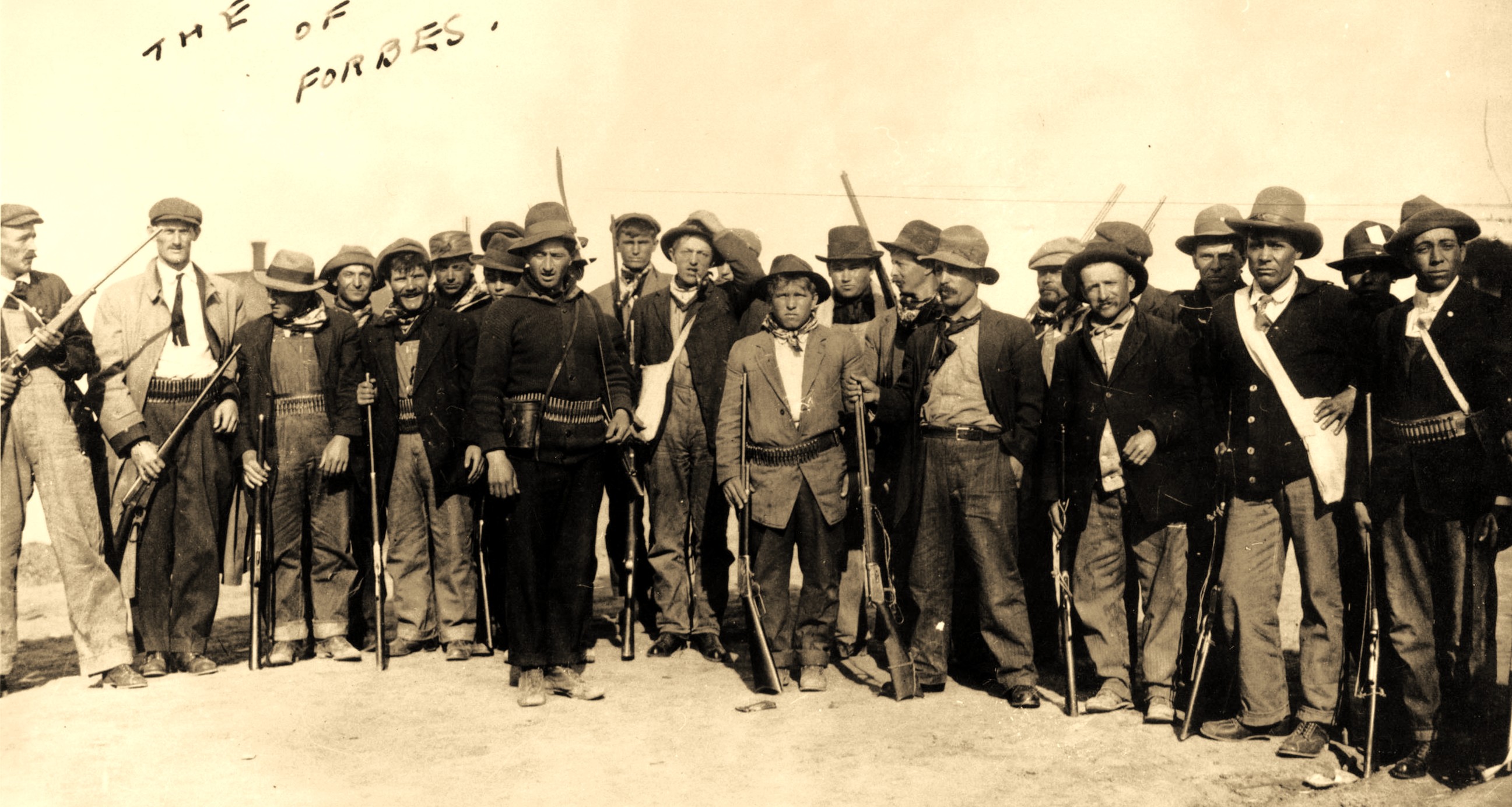 The gunmen-melish, termed by a local newspaper “our representative citizens,” broke loose this morning to carry out the orders of John D. Rockefeller and the mine owners.
