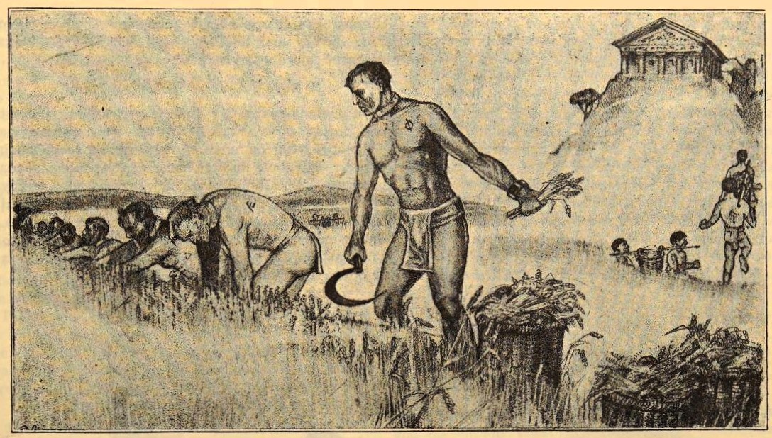 Harvest workers in all countries and all times are surprisingly alike. They swelter today in the hot fields of golden grain just as they did two thousand years ago, and longer. The implements they use are different at present, it is true, but the sweat, the backache and the old, old spirit of revolt, are identical.