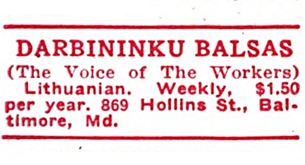 The big cities claim large numbers of Lithuanians, as part of their population. Chicago is said to have 96,000 of them; New York and vicinity 69,000; Boston and other cities in proportion. Chicago has five Lithuanian newspapers, Boston three, Brooklyn three; 36 publications, monthly, weekly and daily, represent the sum total of the Lithuanian press in this country. Of course, it must be recollected that many Lithuanians also read the English, Polish and Russian press. The Lithuanian I.W.W. publishes “Darbininku Balsas” (The Voice of the Workers). It is a four-page weekly. Plans are under way to increase its size to eight pages, beginning Jan. 1, 1916.