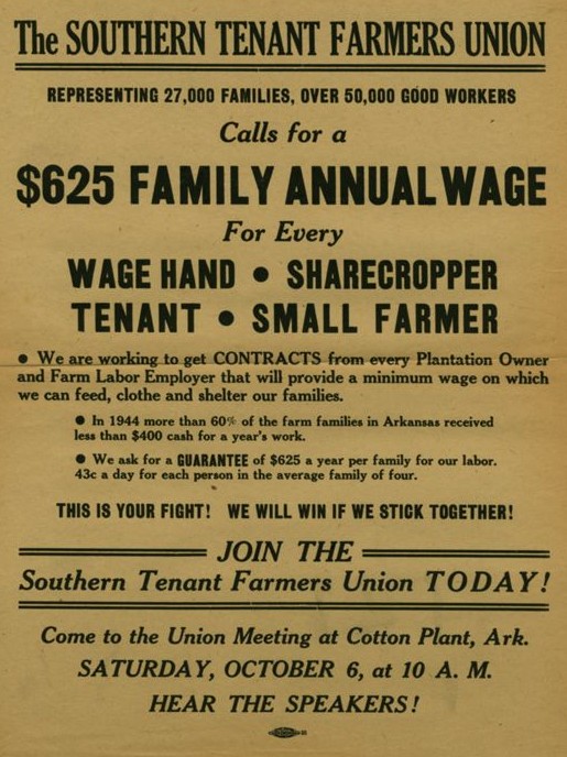 Secretary Wallace admitted in his speech in Maine, April 17, the truth of our contention that, “The South had had its income cut down to the point where the average income of a cotton grower is $250.” It is this great injustice that has caused the sharecroppers, who are the “dirt farmers” of the South, to organize the STFU instead of the agitation of “communistic and socialistic gentlemen” which Wallace charges.