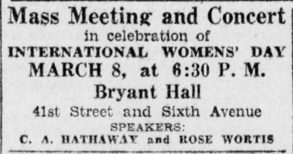 ‘Women’s Day Meets in All Parts of City’ from The Daily Worker. Vol. 10 No. 57. March 8, 1933.