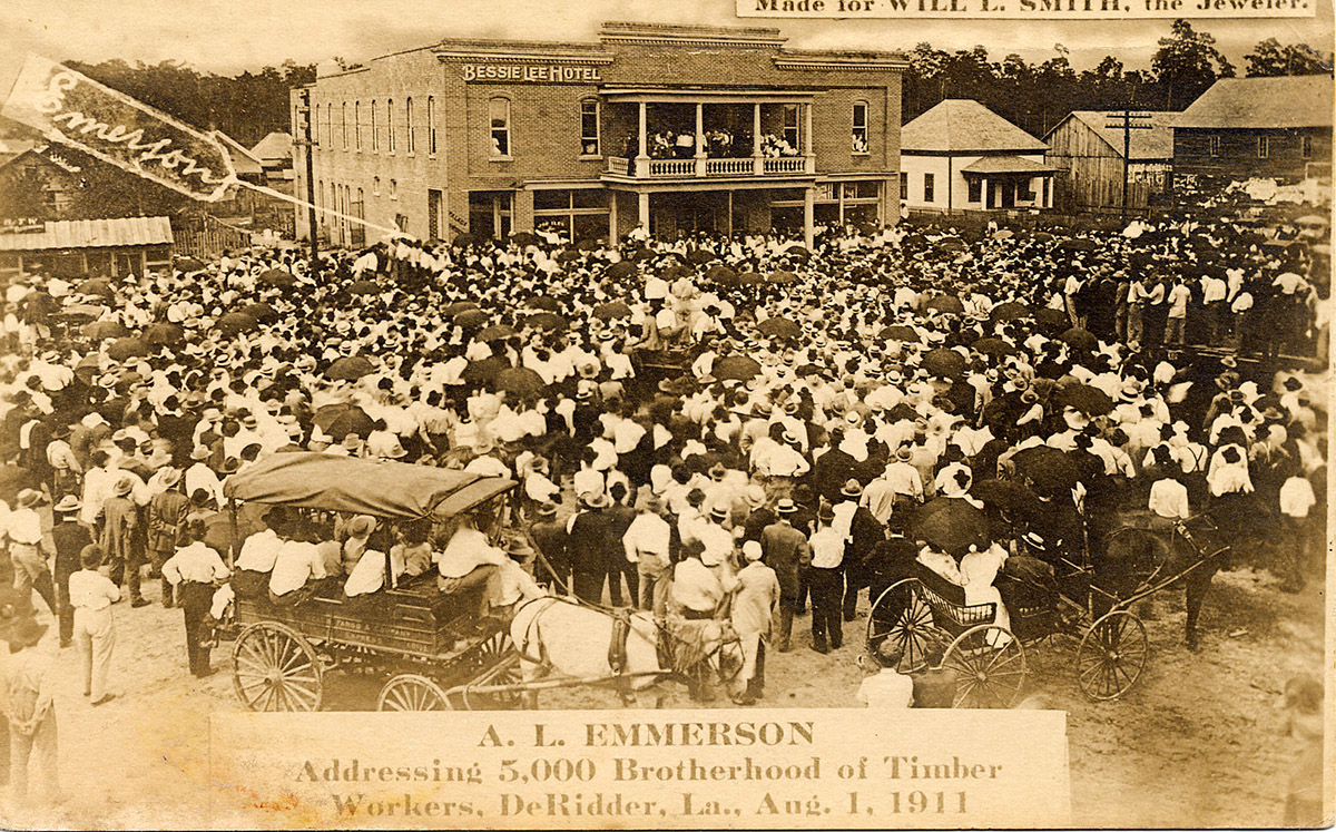 Men, men, wake up! or are you really “yellow curs?” Stand up and demand your rights, by joining the Union and fighting side by side with the brave boys who have made the Boss come through with an increase in wages here and there, a decrease in your living expenses in the “Robbersaries” and Weekly Pay-Day. Do not you know you can, by being MEN and swelling the ranks of the Union, wring more concessions from the grasping Boss? If you are afraid to join the Local near you, write to Jay Smith, Sec.-Treas., Alexandria, La., and he will put you on the Secret Membership Book, where you will find lots of company, because we have had to adopt this means in order to beat the Bosses black-list. Get busy right now, and rise in the estimation of your women folks and your fellow-workers already in the Union, some of whom are toiling right by your side in the mills and woods of the South. “A faint heart never won a fair lady,” and neither will such an organ win a damn thing except kicks, blows and contumely.