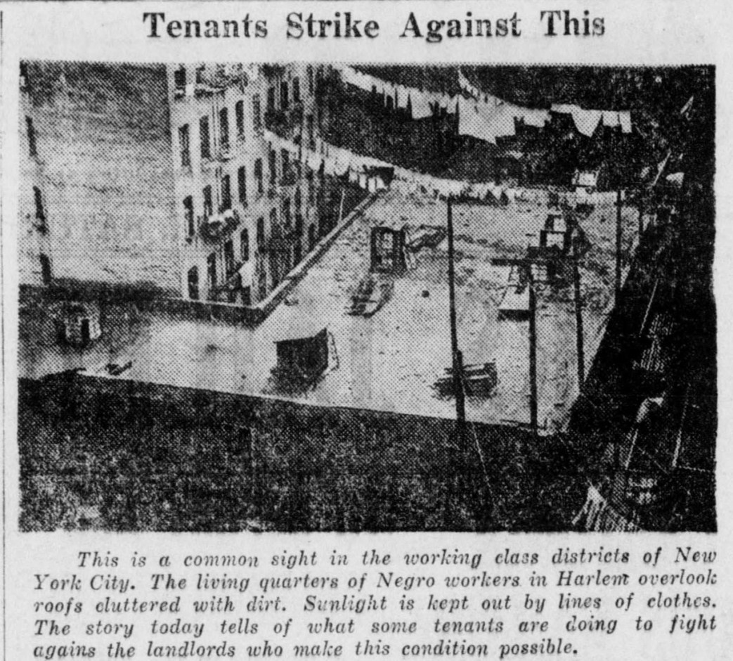 DO NOT get the idea that all the tenants in Harlem are submissive to the will of the landlord. With the appearance of the Harlem Tenants’ League on the field, taking up the fight of working class tenants as it does, Negro workers are beginning to put up a stiff fight.