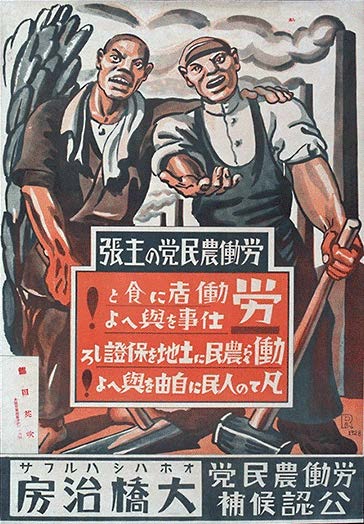 The Kenseikai government which came into power with the slogan of “Defence of the Constitution” pursued a policy that was solely in the interests of the bourgeoisie. As a consequence of the demands of the workers and peasants it passed a Manhood Suffrage Act; but at the same time it passed the Peace Preservation Act, which was directed against the Communist and Left wing movement, as well as other anti-labour legislation. The Manhood Suffrage Act, however, served to stimulate the desire among the masses for a legal mass proletarian party. In 1925 the Peasants and Workers’ Party was formed but was suppressed by the government at its inaugural conference, but another party—the Workers’ and Peasants’ Party (Rodo Nominto) was formed in 1926.