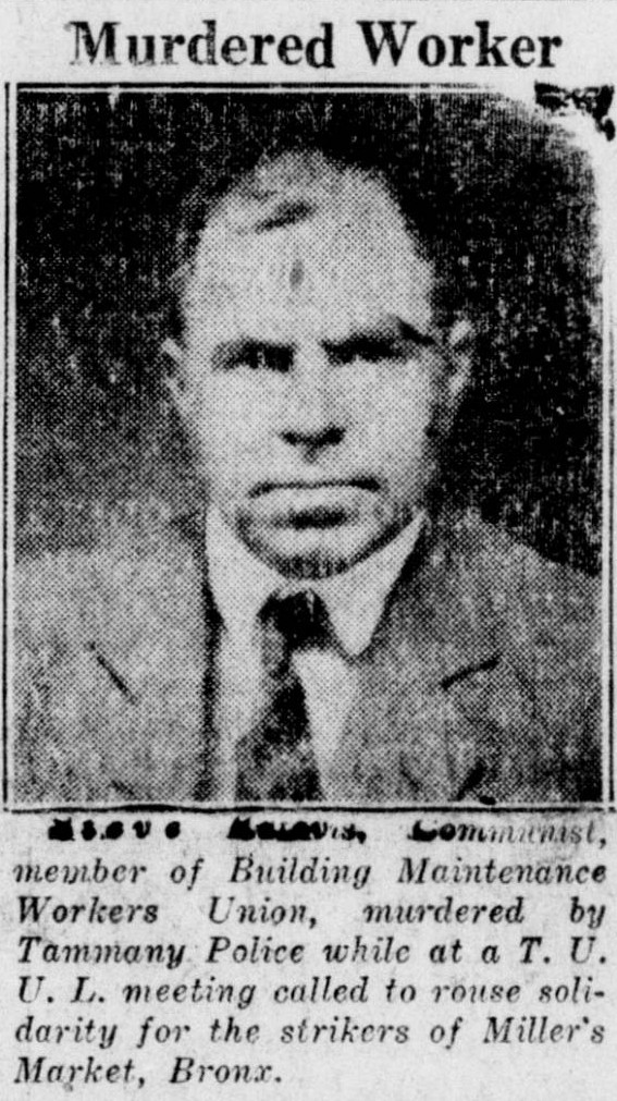 A black streamer hung across the front of the Workers’ Center, on Union Square, headquarters of the Communist Party of New York. Letters two feet high called out to the hundreds of thousands of New York working men and women, “Workers, Avenge the Murder of Steve Katovis.”