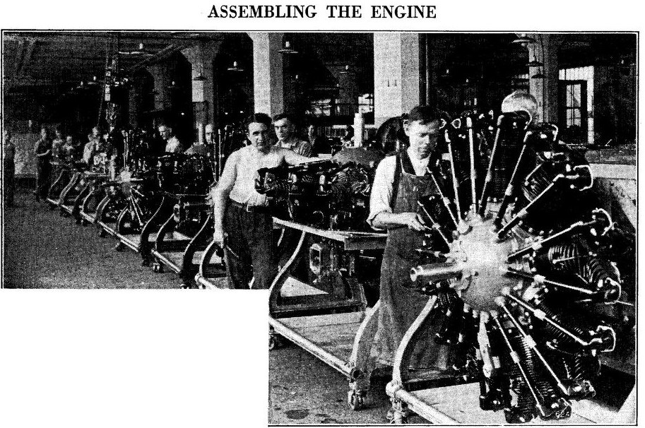 In the first quarter century, the plane has developed from a clumsy, dangerous collection of lumber, cloth and piano wire into a trim, dependable, safe transport device. In 1903 a simple woodshed was hangar, workshop and office for two men who constituted the aviation industry of their day. Now 25,000 men are employed directly in the building and servicing of planes and another 50,000 in fashioning the raw materials, financing, selling and exploiting the product. Each year sees aviation thrusting forward, doubling previous records. Five thousand planes were made last year, 2,000 the year before, probably 10,000 will be turned out this year.