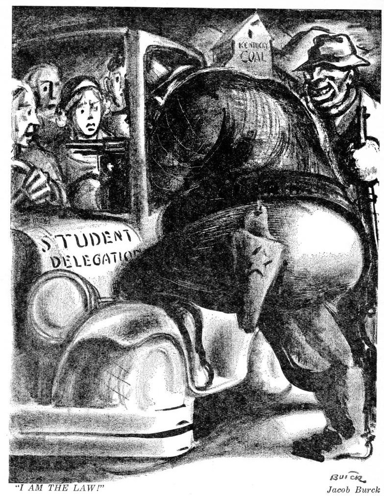 “…prima facie evidence that the governmental machinery of Harlan and Bell counties is being unlawfully employed to prevent the existence of conditions in the mine fields, which cannot stand the light of study, from being disclosed to the outside world…The unlawful actions of the Bell and Harlan county authorities towards our students must apparently be but a small part of the terrorism to which the miners are submitted when they organize and strike against intolerable conditions. There can be no other conclusion from the forcible prevention of any endeavors at outside intercourse with the miners. A cordon of steel has been thrown about the Southeastern Kentucky coal fields. We would not have been kept out if there were nothing to hide.