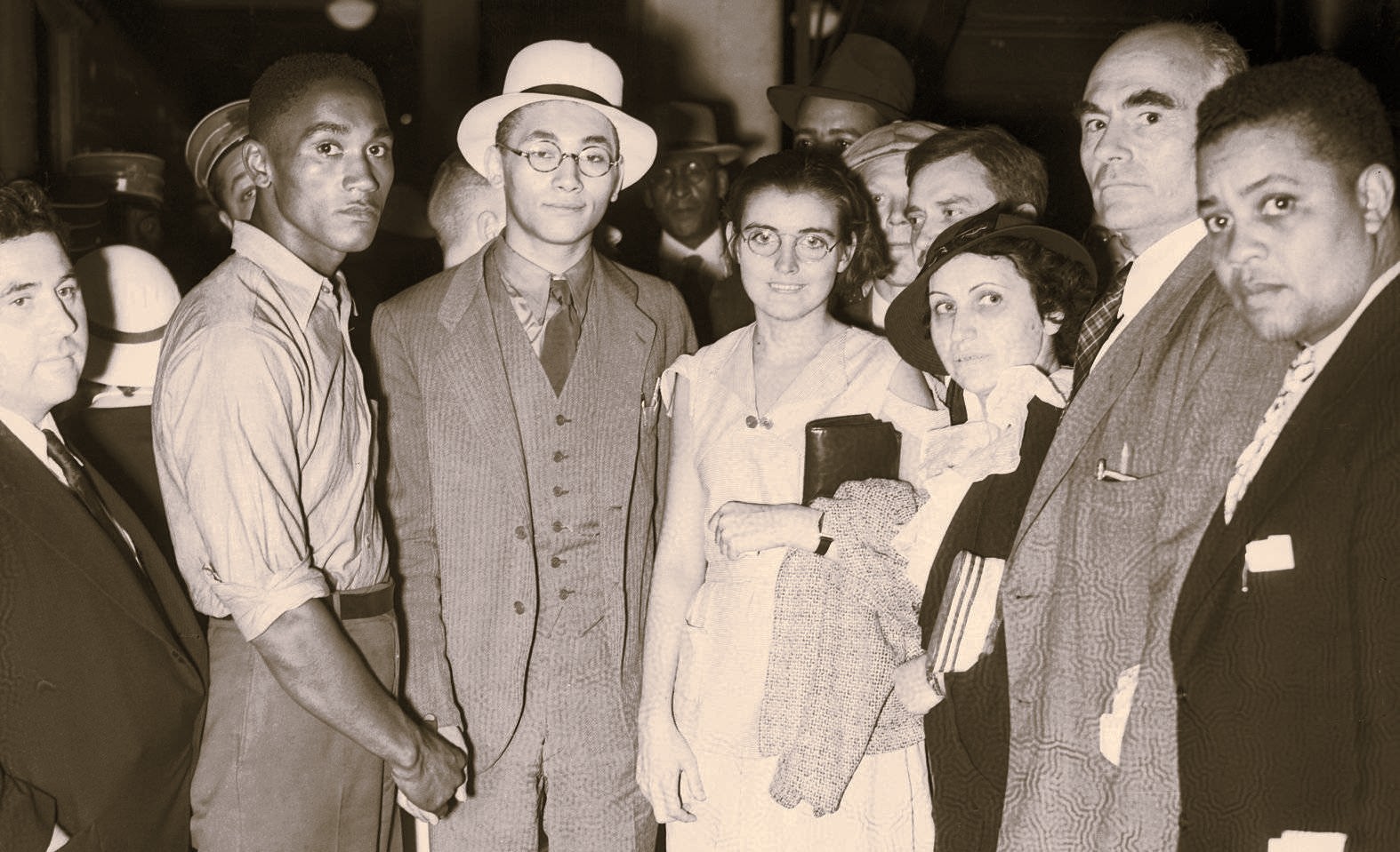 As the train bearing Herndon and Joseph R. Brodsky, chief I.L.D. attorney, and Rev. J.A. Martin, Atlanta Negro minister, roared into the station, special guards and policemen shunted the crowd to an entrance away from the one where Herndon was to appear. But a Negro porter, who had read of Herndon’s fight in Georgia, spotted the deception and immediately rushed to Anna Damon’s side.