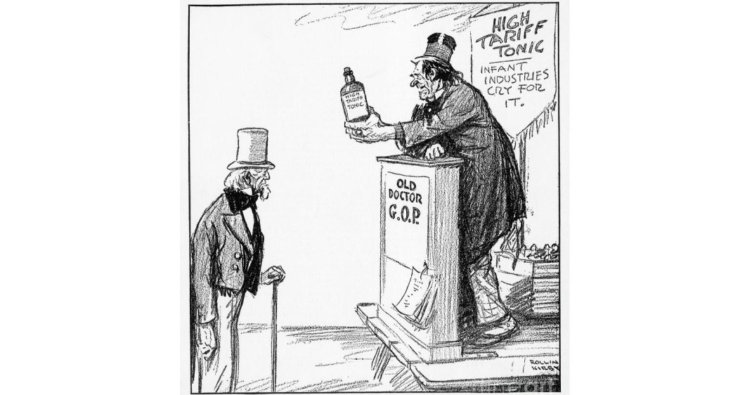 Thus, it is entirely inadequate and incorrect to speak of the tariff today as the protective policy of the bourgeoisie as contrasted with its previous free trade policy. Protective tariff was also the policy of the American bourgeoisie when it was essentially an industrial bourgeoisie, that is, during the period of progressive capitalism. Protection at that time actually helped to develop “infant” industries; in other words, it helped to develop the productive forces.