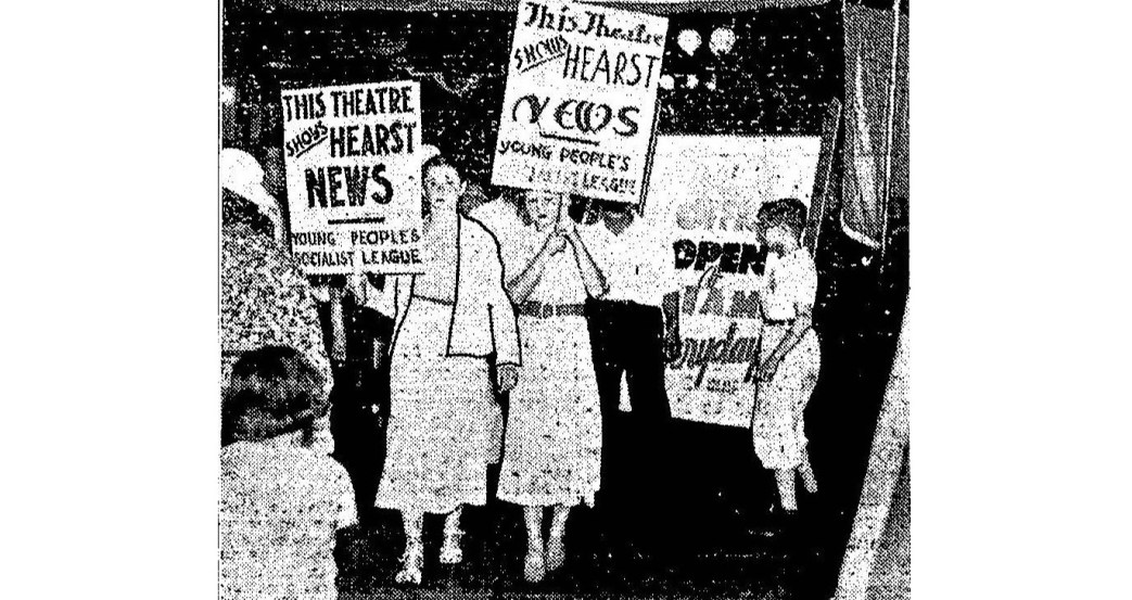 The month of July is the most effective month of the year in which to start an action to ban and boycott Warner Brothers’ pictures. It is the month when the contracts between exhibitors and producers expire, when new contracts are signed. All workers, through factory and mass organizations, can hit Warners and Hearst by immediately petitioning managers of local theatres to withdraw the Warner Brothers product, to refuse to renew their contracts. Every theatre showing one of their pictures should be continuously picketed. Leaflets should be distributed everywhere to build mass action.