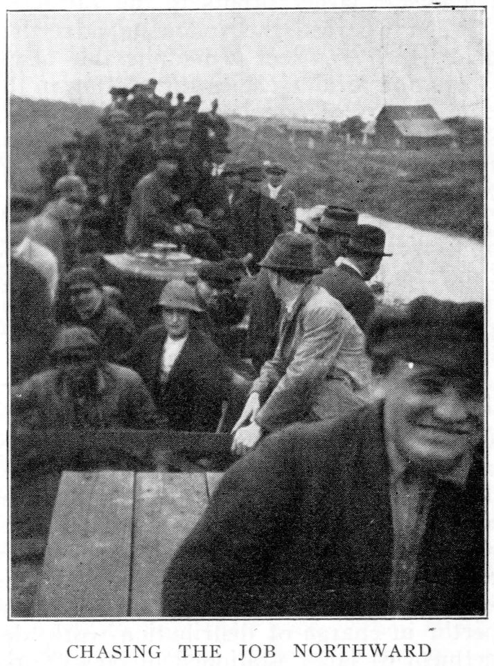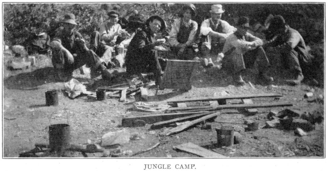 Last December a small unemployed army marched here and there through California, making from eight to twenty miles-a day carrying their bundles on their backs. It was a raggedy little bunch of slaves who had united for the purpose of getting a little to eat and, perhaps, a leaky old warehouse to sleep in. Often, however, the sky was their roof and the rain was their covering. I happened to be of their number for over a week, but the lure of work in the South led me and many others to hit the road.