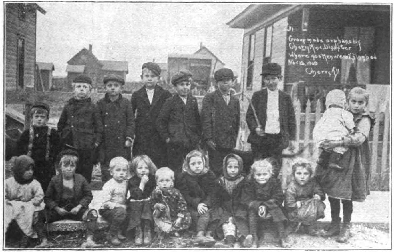 Heart-broken and silent these orphans crowd around the burning mines. Their eyes are fixed on the ground under which their fathers are fast passing away from the world of the living. At times their parched lips move and from them comes an agonized cry for their dear ones, the cry that would come from the throat of our children were we on our death bed. But above it, and drowning it comes their cry for bread.