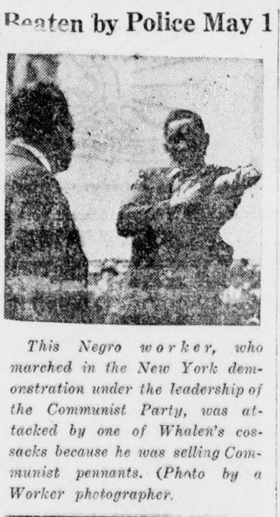YONKERS, N.Y., May 4. Despite police refusal to issue a permit, over 500 workers gathered here on May Day at City Plaza, on the call of the Communist Party. A group of comrades passed the police lines with the speakers’ platform. T.P. Barrett, who was chairman of the meeting, had barely begun to speak, when he was thrown off the stand by a detective and arrested. McLoughlin then got up, but he too was immediately pinched. Another speaker was not permitted to get on the box, and the cops then dispersed the workers.