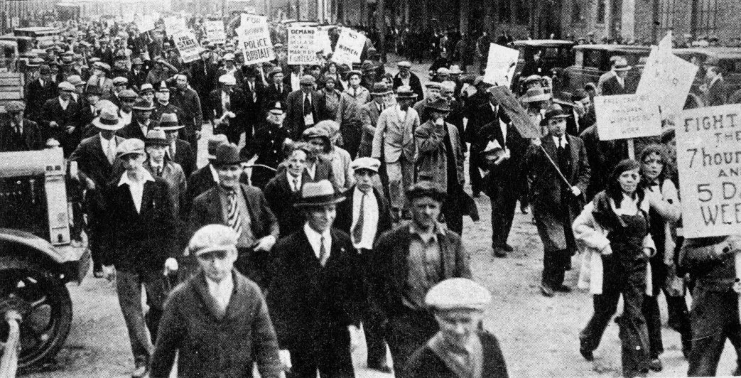 “It was no accident that a high spot in the May Day demonstrations was the serious determination of the masses to fight for social insurance and for Work or Wages.