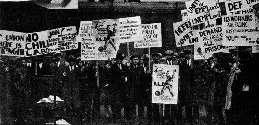 The International Labor Defense had a strong delegation, with Otto Hall, Negro organizer, and J. Louis Engdahl, the National Secretary, marching at the head. Their slogans on placards and banners demanded the release of class war prisoners, called on the workers to carry on the militant struggle. Then came the Friends of the Soviet Union, with their call to workers everywhere to defend the Workers’ Fatherland, and then more workers’ clubs and more banners and placards.