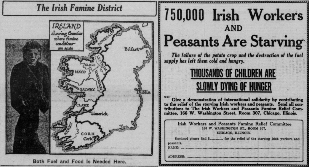 ‘Fighting the Famine in Ireland’ by Robert Stewart from The Daily Worker Magazine. Vol. 2 No. 100. May 9, 1925.