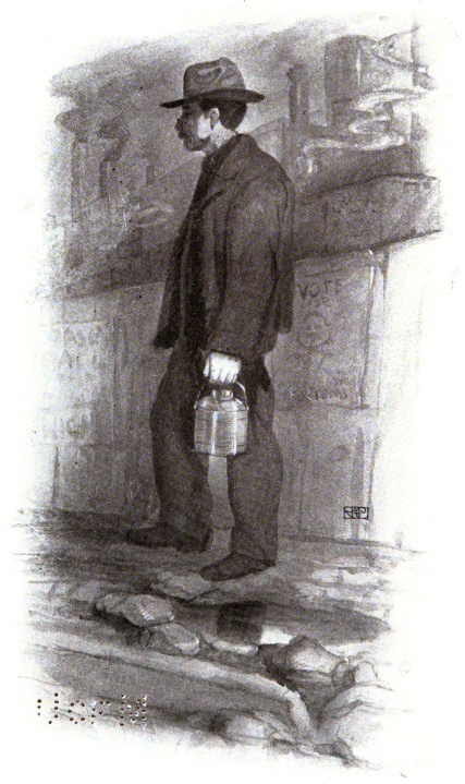 “He’s hungry,” I said. And my lips quivered and the tears started to my eyes. “So am I.” I was very much frightened. Mrs. Nome had cautioned me to look out for the “muggs” and I knew that meant dangerous ground. But the man gave us half a dollar and made us promise to go home. Then he hurried on his way. Sammie brightened up when he saw the money, but when he found it didn’t mean dinner, he resumed his wails and would not be comforted.