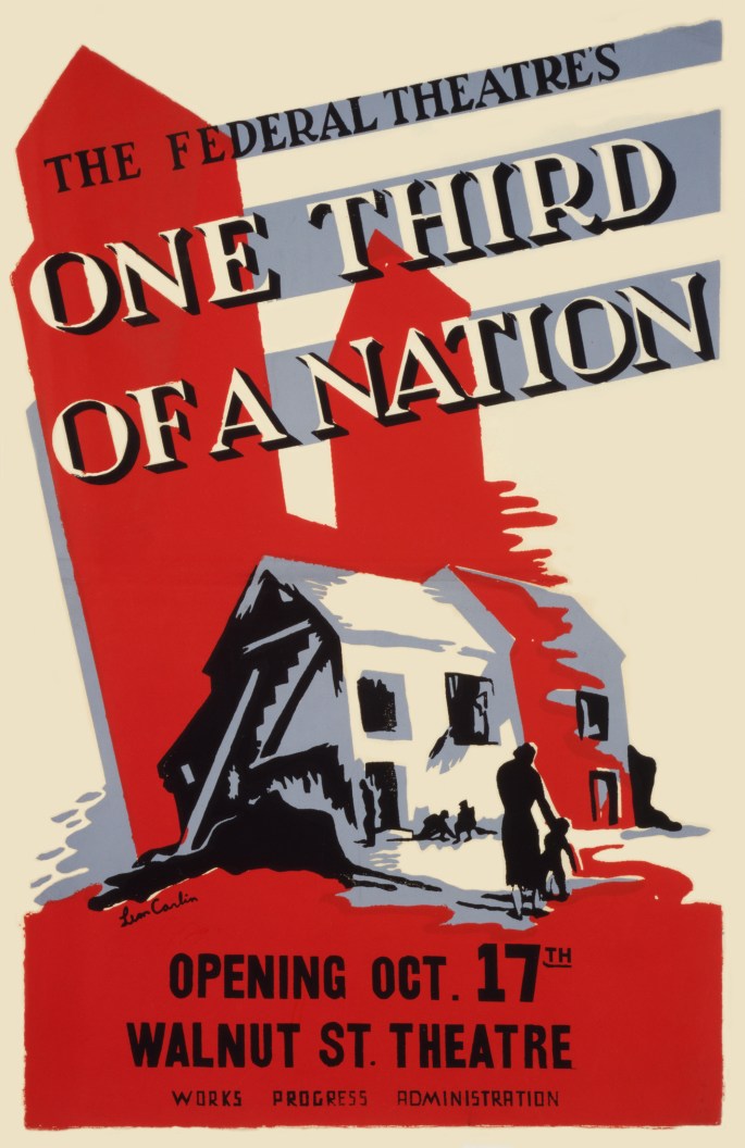 The punch of the play, it seems to me, lies not so much in our accumulated indignation at the landlords as in our indignation at our own easy tolerance. When we find Buttonkooper’s naïveté ridiculous, we are really, perhaps for the first time, seeing how absurd was our compliance to a situation which we inherited from the corporation of Trinity Church. And as Buttonkooper learns that those pious blusterers of Knickerbocker days were pulling the wool over the eyes of the poor suckers who were their contemporaries, he vows that he won’t go through the humiliating experience himself. Once he has learned that he has to get together with the fellow next door, he has started on the highway to a better life. That the Living Newspaper has pointed this lesson with careful evidence and witty candor the reader will discover for himself when he goes to see …one- third of a nation… It’s one of the few “musts” of the year.