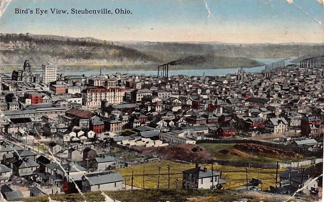 Over the next year we will be taking a close look at the proletarian river town of Steubenville, Ohio and environs. An early rail crossing over the Ohio River connecting Pittsburgh to Chicago, firmly in the industrial behemoth that was the Ohio-Pennsylvania borders, Steubenville’s story is like many around it. By the 1880s Steubenville saw coal mining, paper mills, glass factories, potteries, iron and, what would come to dominate, steel mills. With large numbers of immigrant workers, particularly from Southern and Eastern Europe, and later Black workers from the South, Steubenville’s population peaked in 1940 at around 40,000. Today it has 18,000 residents.