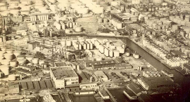 A gang of workers leaving the Constable Hook oil yards after quitting whistle on a winter’s day look and feel like something dragged out of a refrigerator. No fires are, of course, allowed, on account of the inflammable products handled. But the men are not allowed a second off from 7:20 a.m. to 4:30 p.m. to warm themselves in the boiler room.