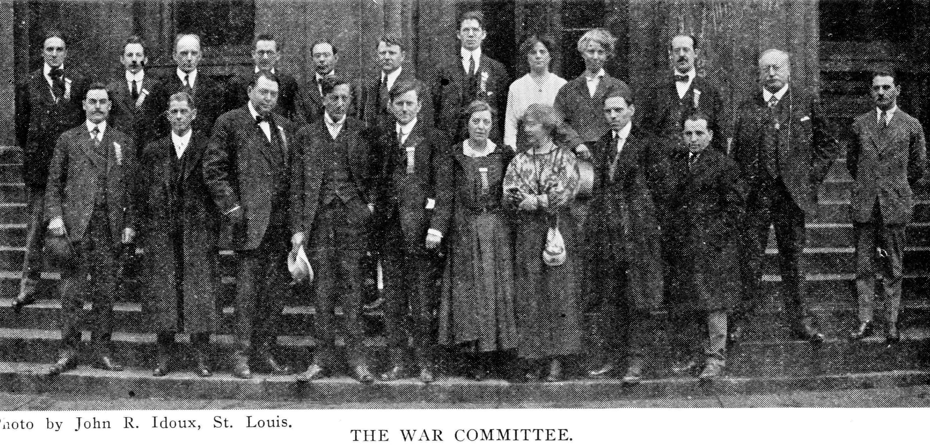 An important document from U.S. Socialist history. The week-long April, 1917 Emergency Conference in St. Louis met to discuss the Socialist Party’s attitude to US involvement in World War One. A culmination, rather than the beginning of a debate, the first day saw nominations for the fifteen-person Committee on War and Militarism to draft the Party’s position. While the fight with the pro-war Right is well known, there were three positions; the broad anti-war Majority, the Right, and the self-declared Left.
