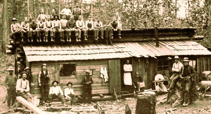 AT THE AGE of 18 in the year 1898 I landed in a lumber camp for the first time. That was in upper Michigan for Smith & Alger Lumber Co. Since that time I have visited several and have found them all pretty much alike. The wages at that time was from $20 to $35 per month and board. The board consisting of corned beef, commonly known as red horse, salt pork, beans, potatoes, bread and some pastry. This camp worked a crew of about 90 men, all sleeping in one bunk house. Double-decked board bunks that the Jacks called “muzzle loaders,” which means that the bunks are built along each side of the bunk house, spaced off to allowing 4 ft. 6 in. for two men. Of course, we had to sleep two in a bunk. One had to crawl in and lay with head to wall and feet toward main floor, which made it so dark one could not read without a light even in day time. In the center of the floor was a large stove to heat the building and also to dry the wet clothing including socks, which are wet every night. One can imagine how one would feel wakening up in the morning after inhaling such fumes all night.