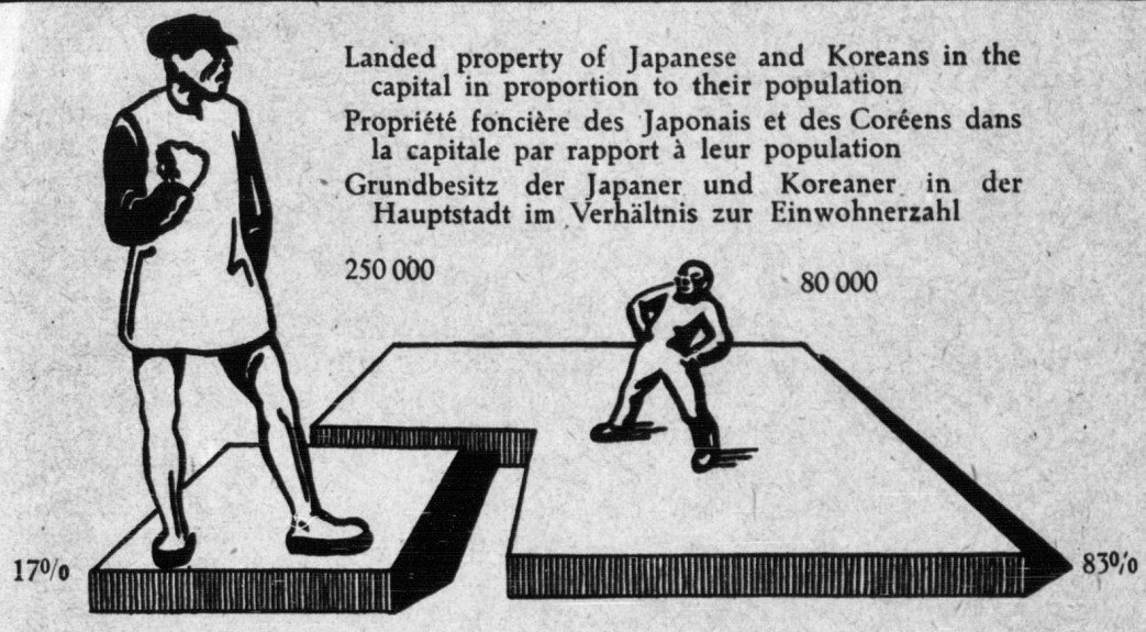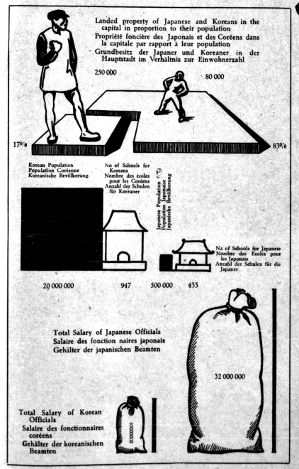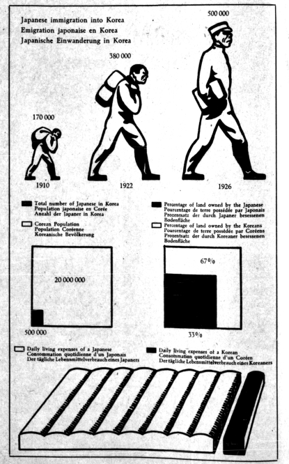 Unfortunately we do not possess any sure and correctly compiled statistics for the other branches of economy. We maintain, however, that we do not exaggerate when we assert that at least half of the total Korean economic products are taken away by the Japanese.
