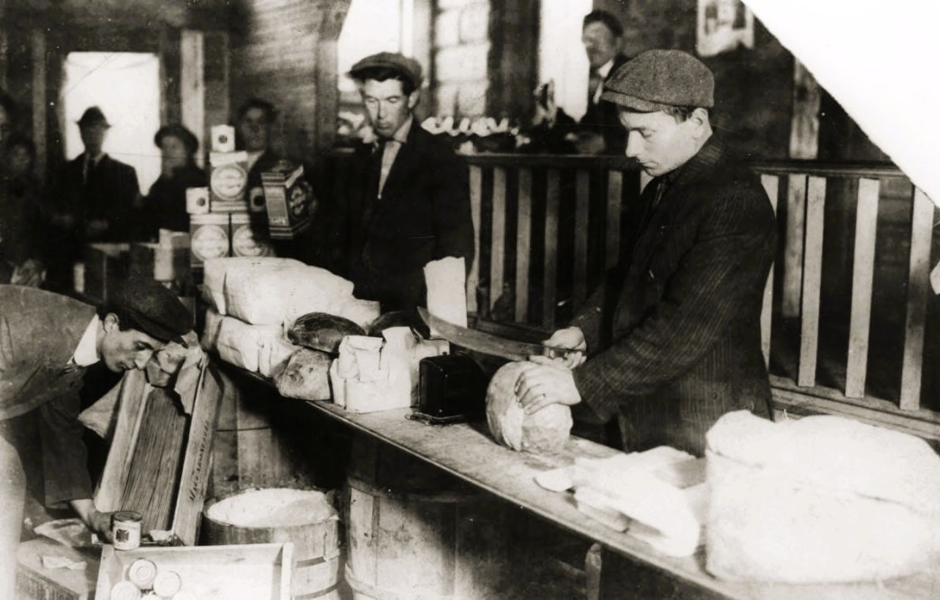What did we weigh and pack for each family of five a fair amount for two days? Two pounds of bread, one pound of pork or lard, half a pound of tea or coffee, one pound of imported macaroni, one pound of prunes, one cabbage, one cake of soap.