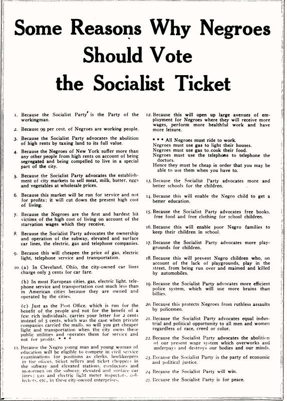 We nominate candidates not for the purpose of electing a few men or women to office—but mainly for the purpose of taking away political power from the capitalist class and placing it into the hands of the working class. And this, again, is done with the understanding that it is not enough to elect workingmen, but people who understand the incessant struggle between capital and labor, and who recognize that the struggle can be ended only by the socialization of the means of production.
