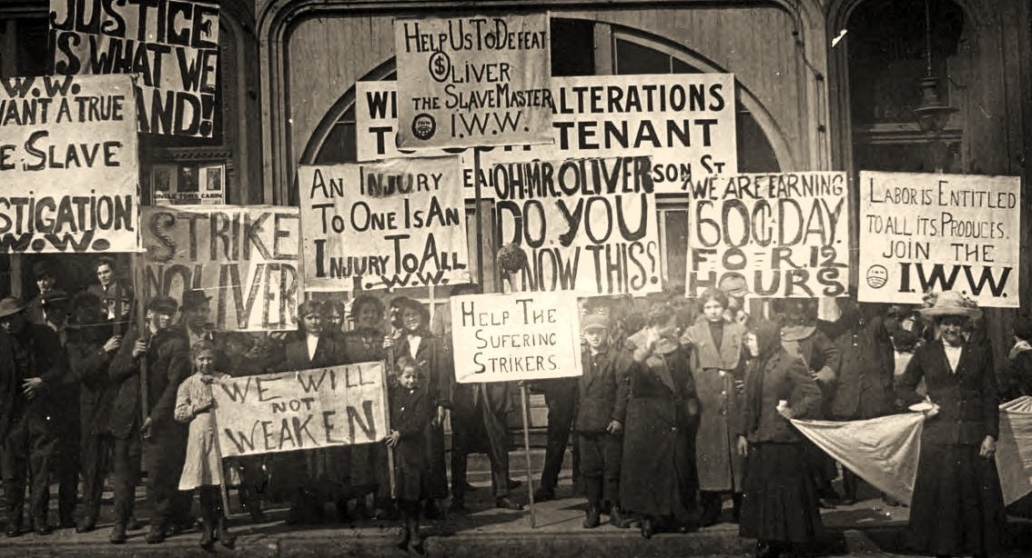 On the 12th day of January, the workers in the textile mills of Lawrence, Mass walked out on a spontaneous strike against a reduction of wages instituted by the mill owners in reply to a law passed by the Massachusetts Legislature reducing the hours of work for women and children from fifty-six to fifty-four hours per week. Approximately 25,000 mill workers were actively involved in the strike. The strikers were of twenty-seven different nationalities, speaking forty-three different languages and dialects.