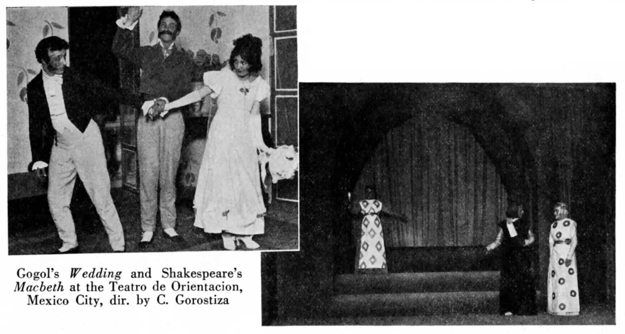 Bernard Shaw’s classic indictment of the middle-class theatre as an institution whose ideas were consistently twenty years behind the times is so vividly apt in Mexico that here, again, we would seem to have too good a set-up just to prove an advance conviction. There is not even the pallid liberal pretense pretense (symptomatic almost everywhere else) of an occasional serious “problem” play questioning the values and standards of their own lives, the problem usually being, should we be more broad-minded about marital infidelity or is adultery an eternal human instinct? Here the bourgeois theatre is strictly one of escape in the most elementary and mechanical sense of this act. The four playhouses are closed boxes far from the hideous circle of home. There, in happy darkness, they can be stunned into a needed coma by a series of wandering vaudeville turns under incredible greens and ambers (Madrid-New York); or a “political” revue with aimless anarchistic pot-shots at any public figure who happens to have made a nitwit of himself that week (Paris); or “modern” problem comedies from Spain reminiscent only of the early Rachel Crothers at her sententious worst; or mystery plays adapted from the British, French and American, where the illusion of being frightened out of your own depressing skin must serve as a complete compensation for the actual failure to stir you at all.