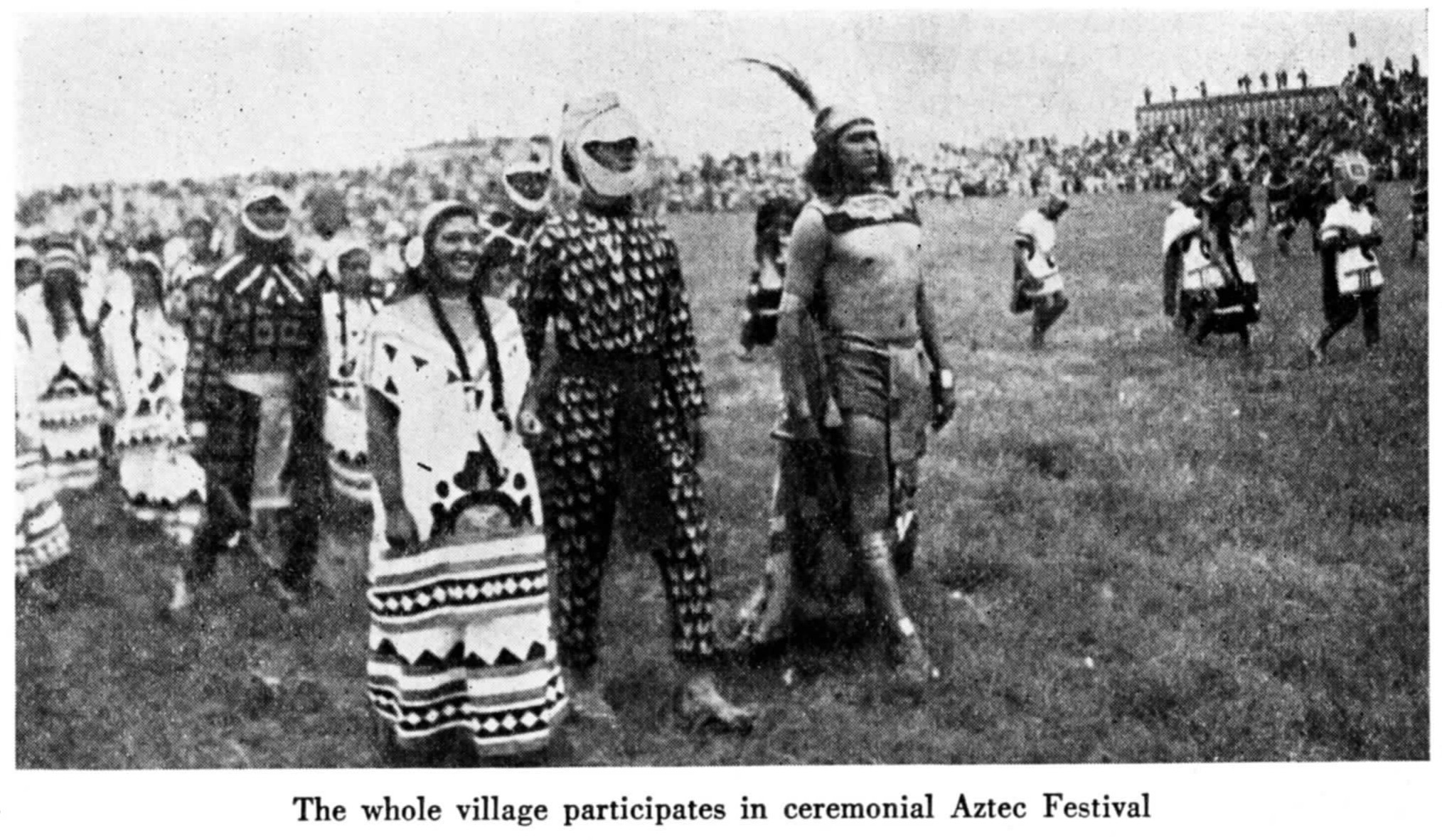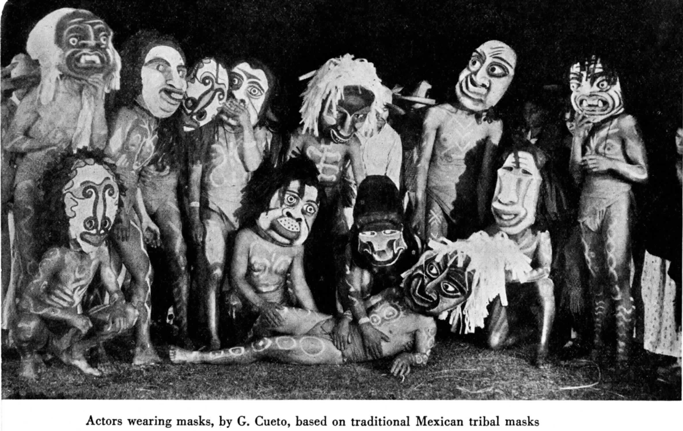 And a few times a year a concert of native dance-dramas is put on at the Hidalgo Theatre, again by the government boys. These are preposterous museum re-creations, highly offensive when it is realized that the real thing still functions brilliantly in countless villages in spite of persistent discouragement by the still powerful clergy (although this same clergy will sometimes deliberately avail itself of a pagan festival and incorporate it into the ritual of a saint’s day). The dance-drama in Mexico is a profound and important manifestation of popular theatre, but it is in no sense analogous to the new theatre, and it is a form that can scarcely be taken over and expanded before the establishment of a régime which is fundamentally dedicated to the true preservation of folk culture. Consideration thereof is accordingly pretty much out of the scope of this article.