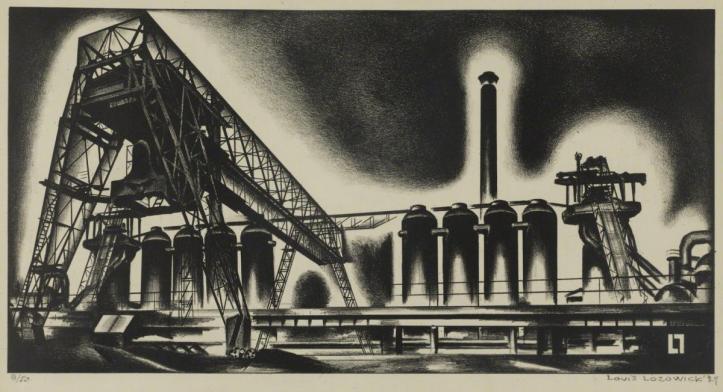 Lozowick is permeated by the significant forces of the 20th century. He has not tried to evade them; instead he has understood them, accepted them, and found an aesthetic equivalent for them in painting. Against the old art of sentimentalism, adoration of the individual, in–and nostalgic longing for the past, he represents an art that is impersonal, collective, precise, and objective; in this he is as truly representative of the scientific spirit of this age as the medieval painters of the metaphysical spirit of their age.