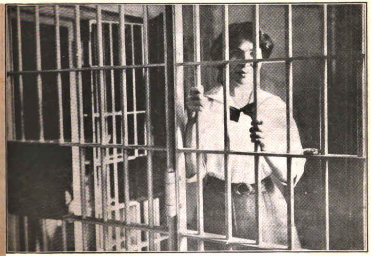 It is the first duty of a newcomer to clean out the dirt left by the last occupants–she must bring her own soap, and cleaning tools–the jail provides none. Food is served twice a day. I got dry bread, fried potatoes and black coffee for breakfast. Dinner consisted of beans and dishwater soup.