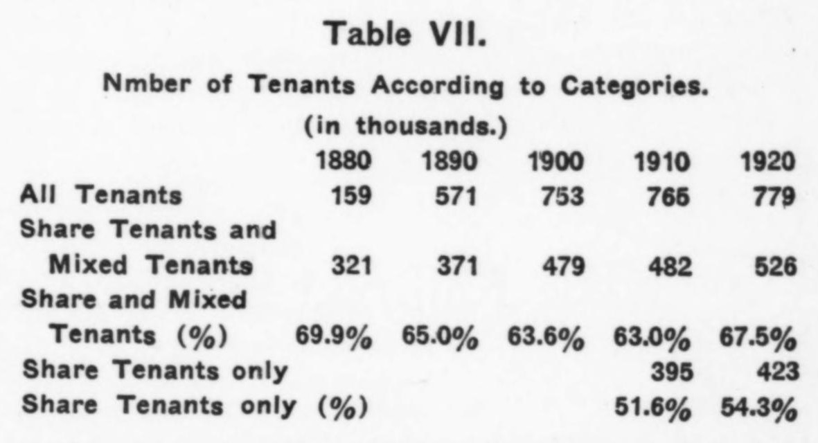 If we exclude the South and consider the share tenancy in the northern agricultural areas we get the following facts: